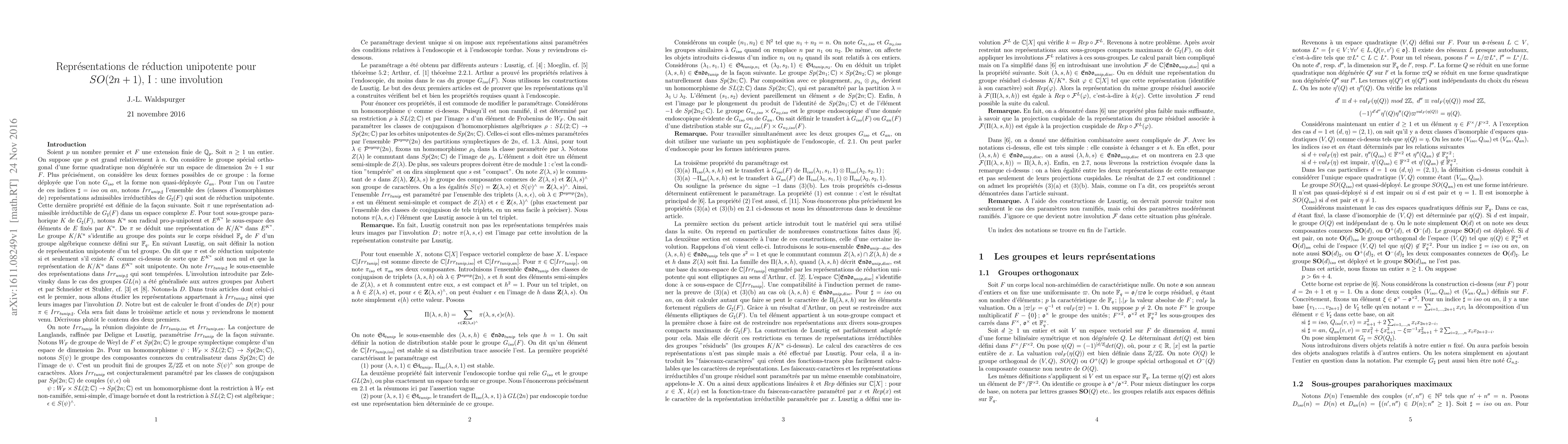 We consider a group SO(2n+1) over a p-adic field, and tempered irreducible representations of this group, of unipotent reduction. We use the construction due to Lusztig of these representations. In an old paper with Moeglin, we have defined an involution in the complex vector space generated by those representations which are elliptic. It is strongly related to another involution defined by Lusztig for finite groups. We give a new definition of our involution and we prove it commutes, in some sense, with Jacquet functor.