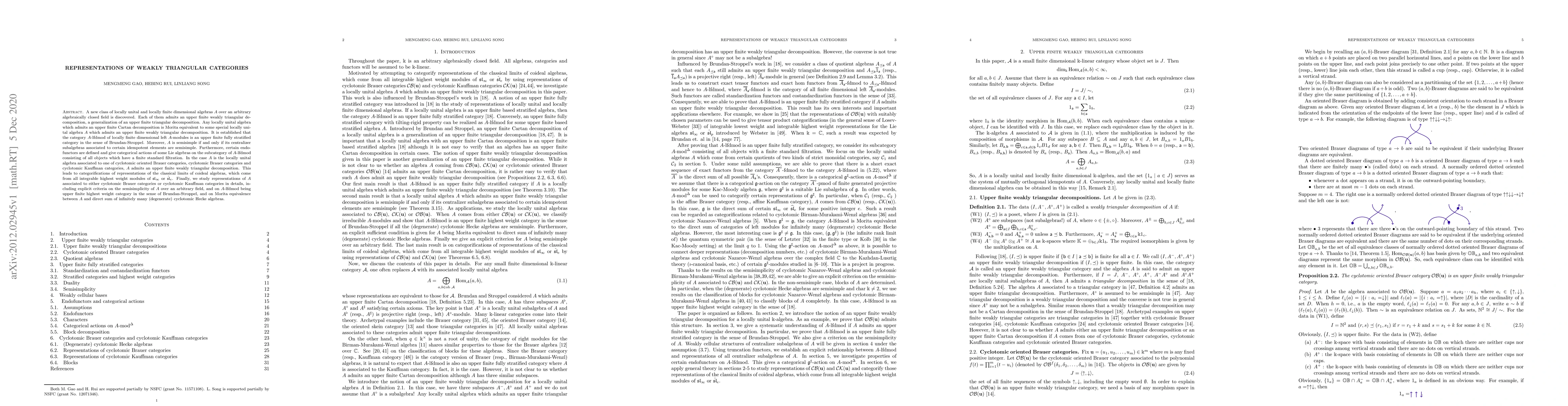 This paper introduces a new class of locally unital algebras with upper finite weakly triangular decompositions, establishing connections to Morita equivalence and the structure of their module categories. It explores representations and semisimplicity conditions, particularly for algebras linked to cyclotomic oriented Brauer categories, and provides categorifications of classical coideal algebra limits.