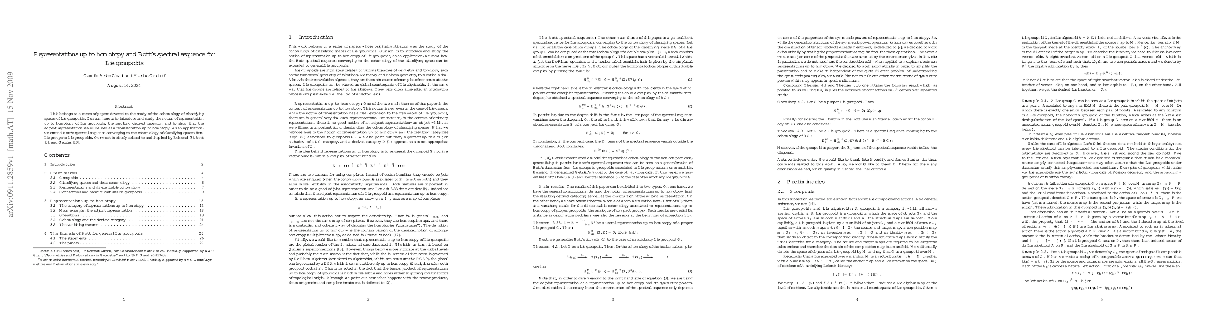 This paper introduces a new concept of representation up to homotopy for Lie groupoids, extending Bott's spectral sequence to this field, and shows that the adjoint representation is well-defined in this context.
