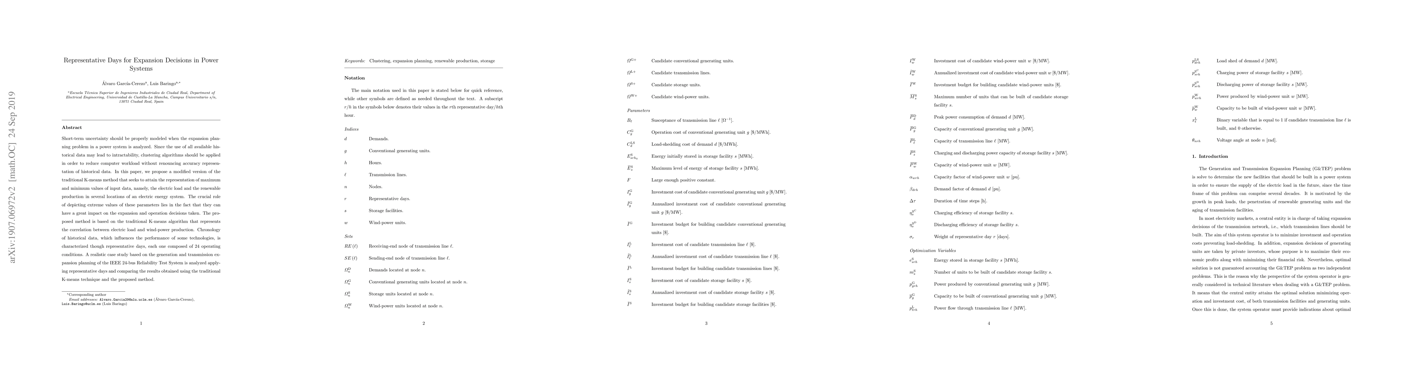Short-term uncertainty should be properly modeled when the expansion planning problem in a power system is analyzed. Since the use of all available historical data may lead to intractability, clustering algorithms should be applied in order to reduce computer workload without renouncing accuracy representation of historical data. In this paper, we propose a modified version of the traditional K-means method that seeks to attain the representation of maximum and minimum values of input data, namely, the electric load and the renewable production in several locations of an electric energy system. The crucial role of depicting extreme values of these parameters lies in the fact that they can have a great impact on the expansion and operation decisions taken. The proposed method is based on the traditional K-means algorithm that represents the correlation between electric load and wind-power production. Chronology of historical data, which influences the performance of some technologies, is characterized though representative days, each one composed of 24 operating conditions. A realistic case study based on the generation and transmission expansion planning of the IEEE 24-bus Reliability Test System is analyzed applying representative days and comparing the results obtained using the traditional K-means technique and the proposed method.