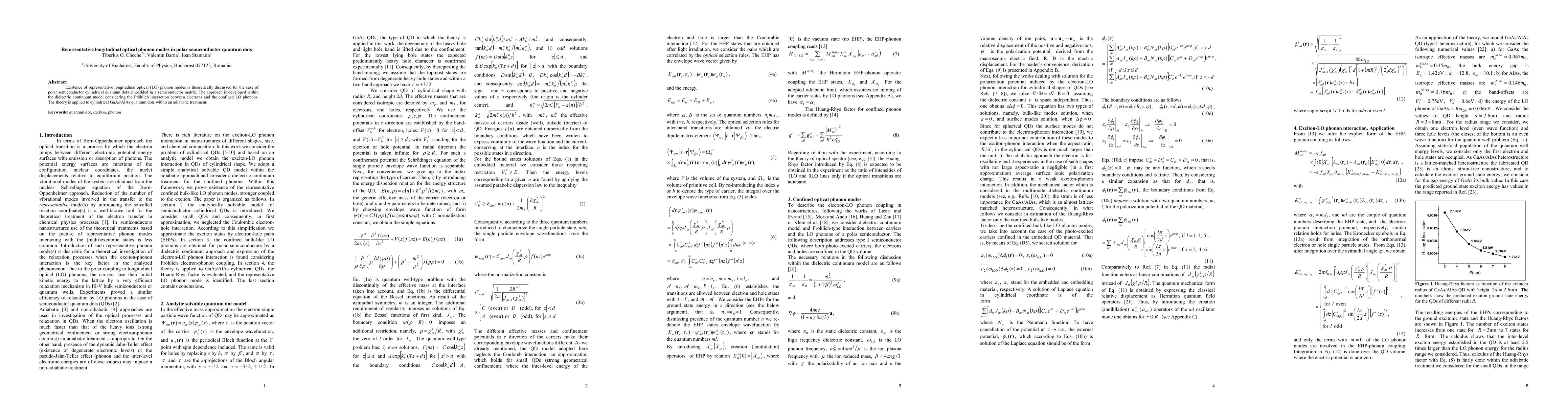 This paper theoretically investigates the representative longitudinal optical phonon modes in polar semiconductor cylindrical quantum dots using a dielectric continuum model and the Fröhlich interaction. The study applies the developed theory to GaAs/AlAs quantum dots, providing insights into phonon behavior within the adiabatic framework.
