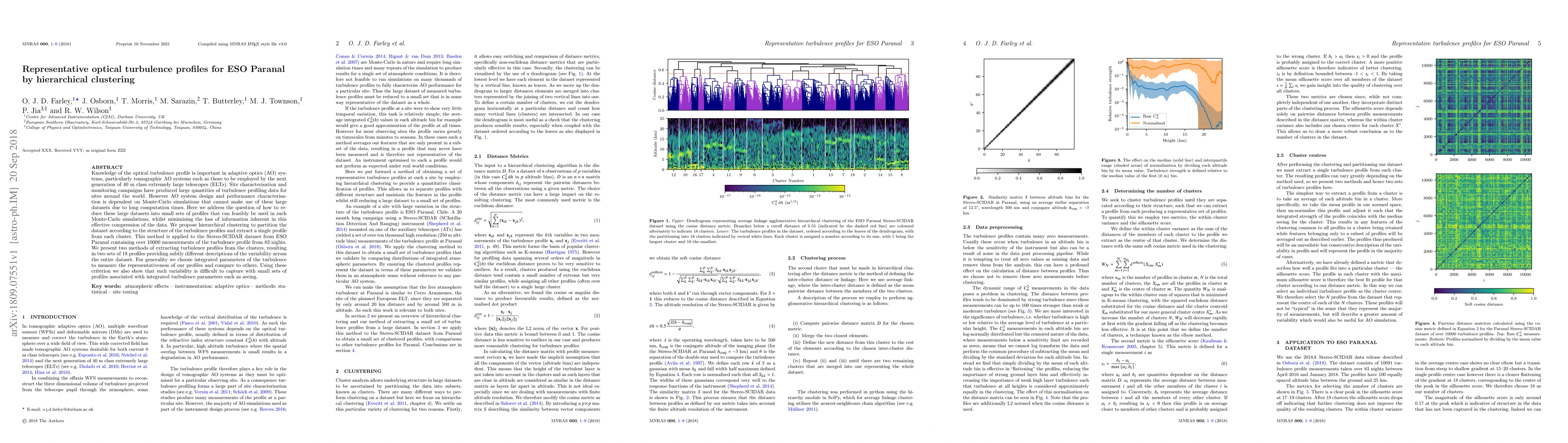 This paper proposes using hierarchical clustering to reduce large datasets of optical turbulence profiles from ESO Paranal into manageable sets for adaptive optics simulations. The method extracts representative profiles from clusters, demonstrating two methods that yield 18 profiles each, while highlighting the challenge of capturing variability with limited profiles.