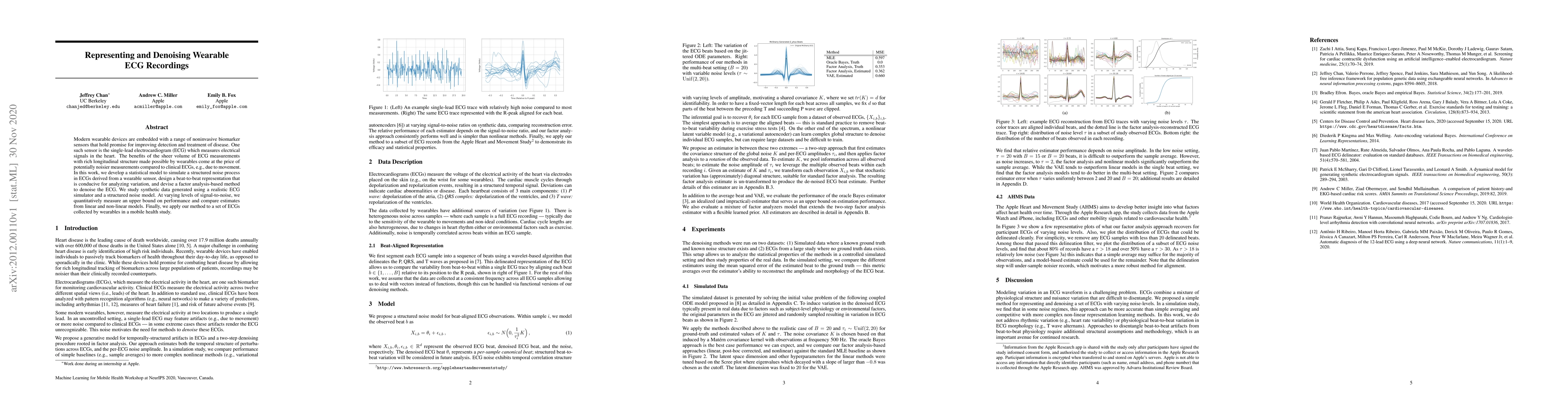 Researchers developed a statistical model to simulate structured noise in wearable ECGs, designed a beat-to-beat representation, and created a factor analysis-based method to denoise the signals, demonstrating improved performance over linear models.