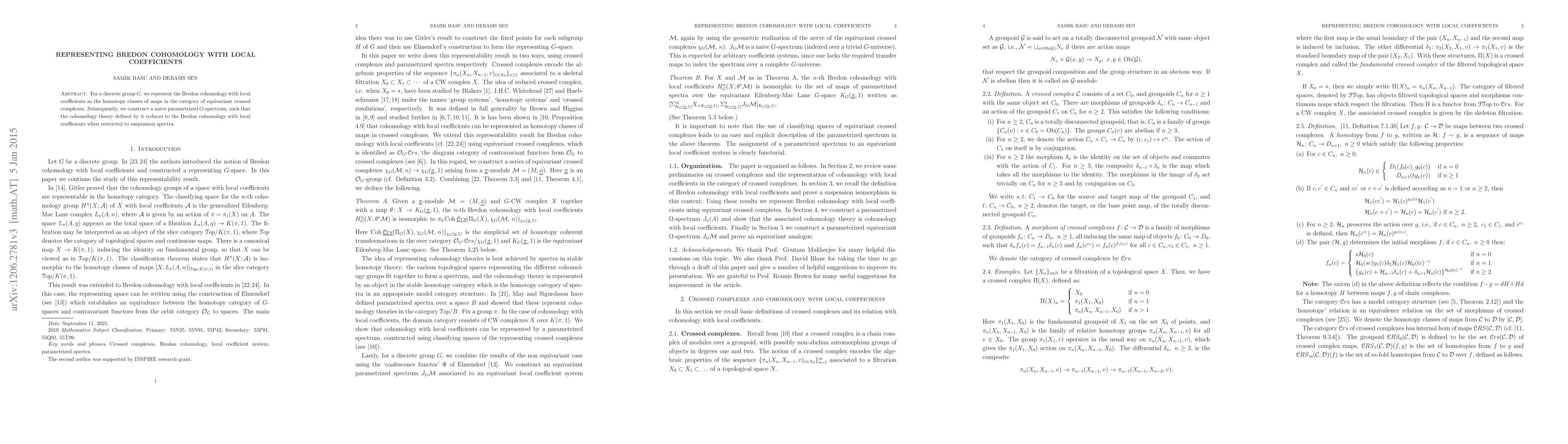 This paper represents Bredon cohomology with local coefficients using homotopy classes of maps in the category of equivariant crossed complexes. It constructs a naive parametrized G-spectrum whose cohomology theory matches Bredon cohomology with local coefficients when applied to suspension spectra.