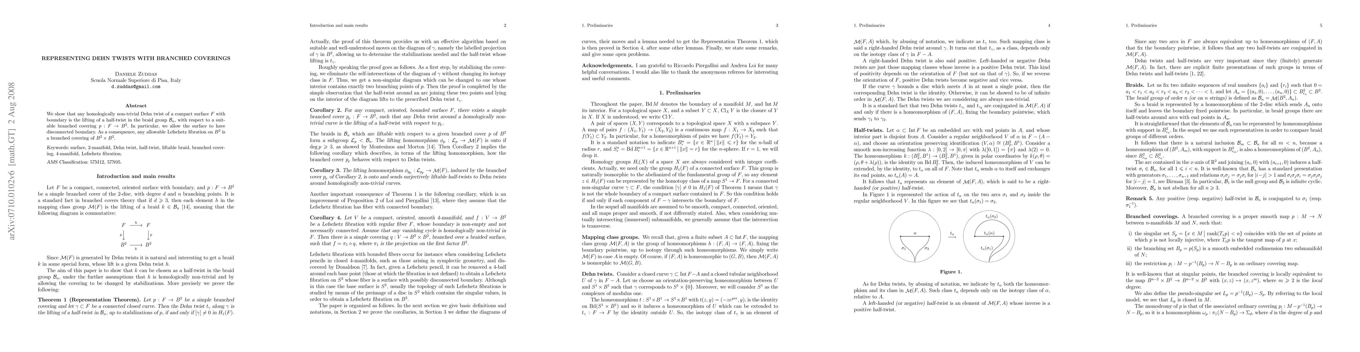 We show that any homologically non-trivial Dehn twist of a compact surface F with boundary is the lifting of a half-twist in the braid group B_n, with respect to a suitable branched covering p : F -> B^2. In particular, we allow the surface to have disconnected boundary. As a consequence, any allowable Lefschetz fibration on B^2 is a branched covering of B^2 x B^2.