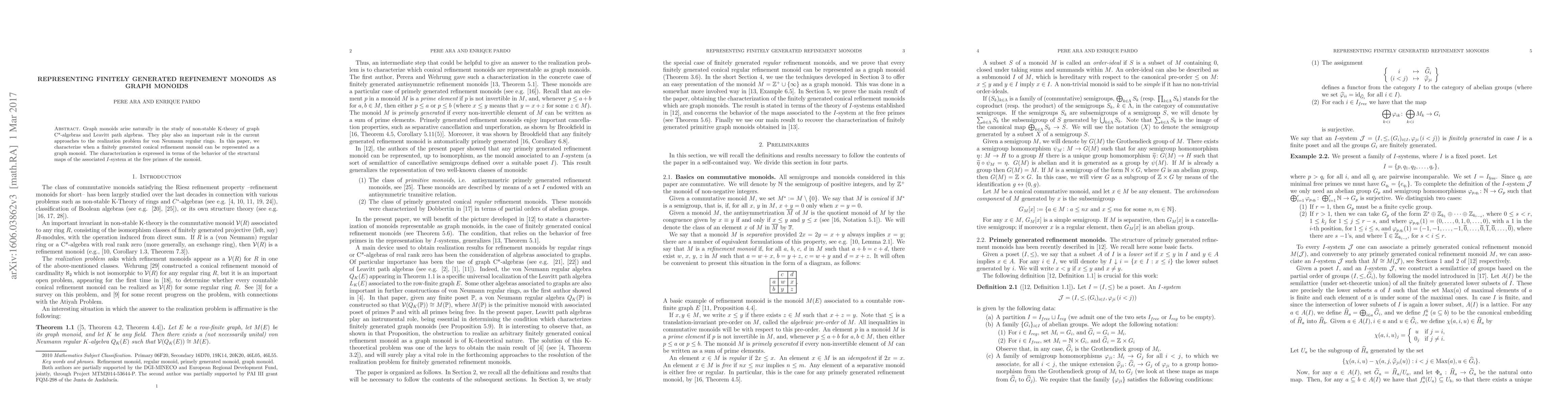 This paper characterizes when finitely generated conical refinement monoids can be represented as graph monoids, providing a characterization based on the behavior of structural maps at the free primes of the monoid, relevant to non-stable K-theory and realization problems in von Neumann regular rings.
