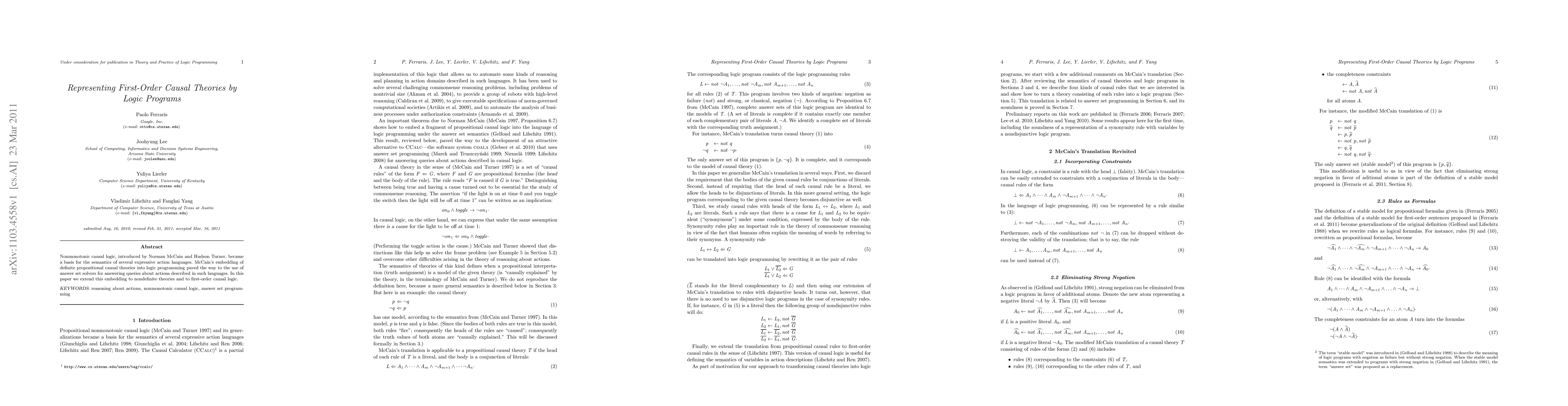 This paper extends the embedding of propositional causal theories into logic programming to nondefinite and first-order causal logics, enabling the use of answer set solvers for querying complex action languages. The approach leverages nonmonotonic causal logic foundations to represent and reason about causal relationships in a formal logic framework.