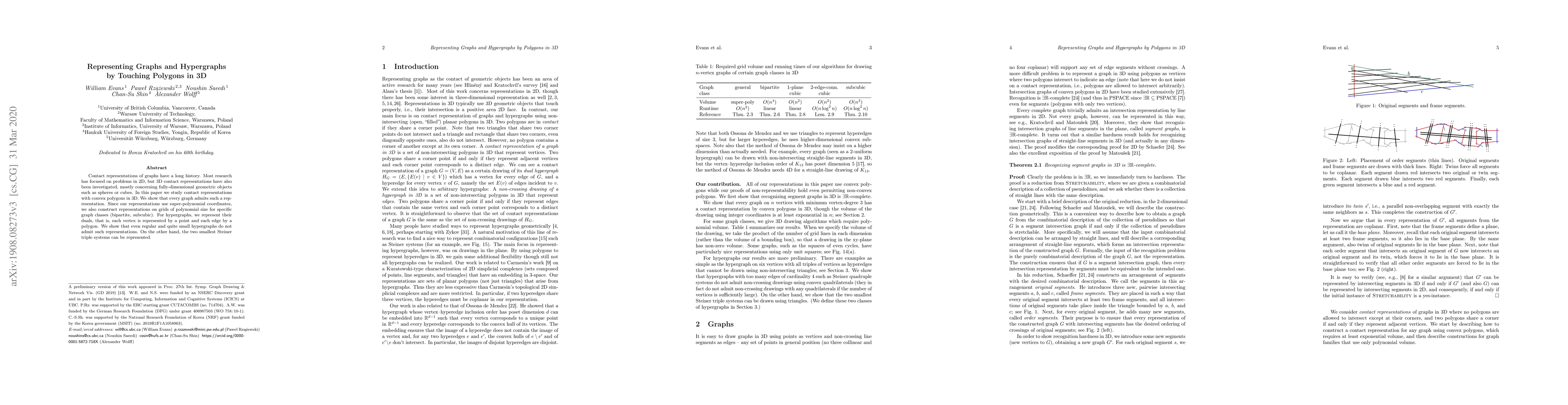The paper introduces a novel method for representing graphs and specific classes of hypergraphs in 3D using convex polygons, demonstrating both existence and constructive approaches for certain graph classes on polynomial-sized grids.