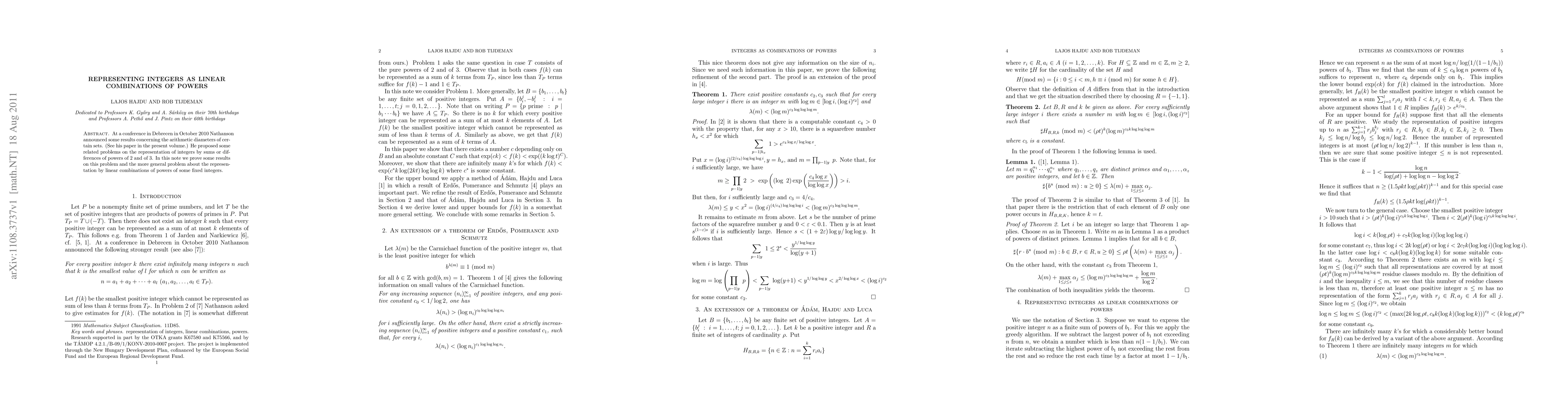 Researchers prove results on representing integers as linear combinations of powers of fixed integers, building on previous work by Nathanson.