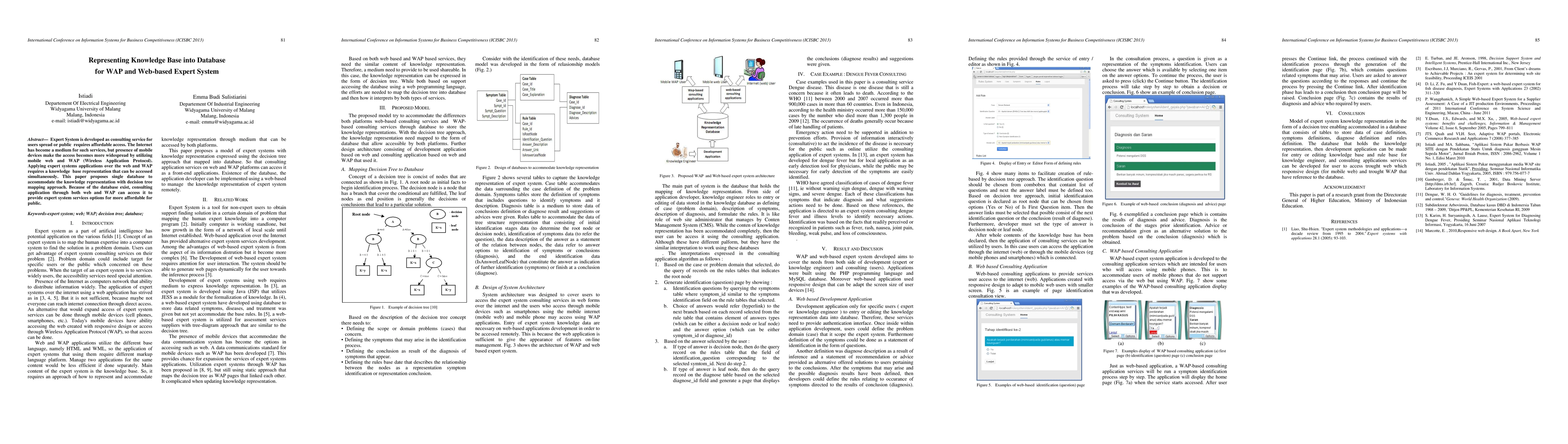 The paper presents a database-driven approach for representing knowledge bases in expert systems, enabling simultaneous access through web and WAP platforms.