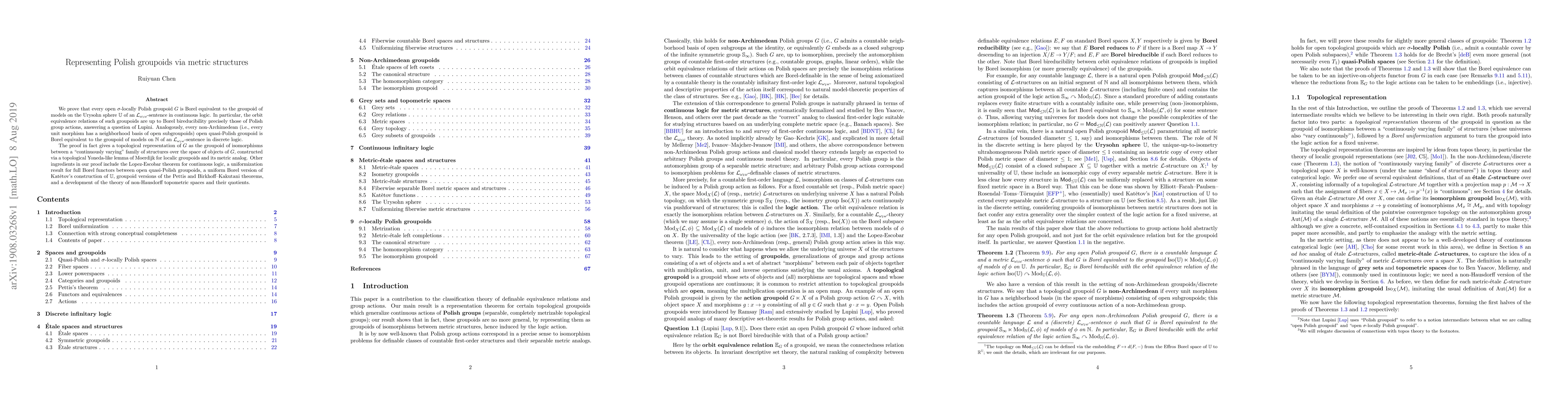 The paper introduces a topological representation of open $\sigma$-locally Polish groupoids and non-Archimedean open quasi-Polish groupoids as groupoids of models on specific metric structures, bridging descriptive set theory and the theory of groupoids.