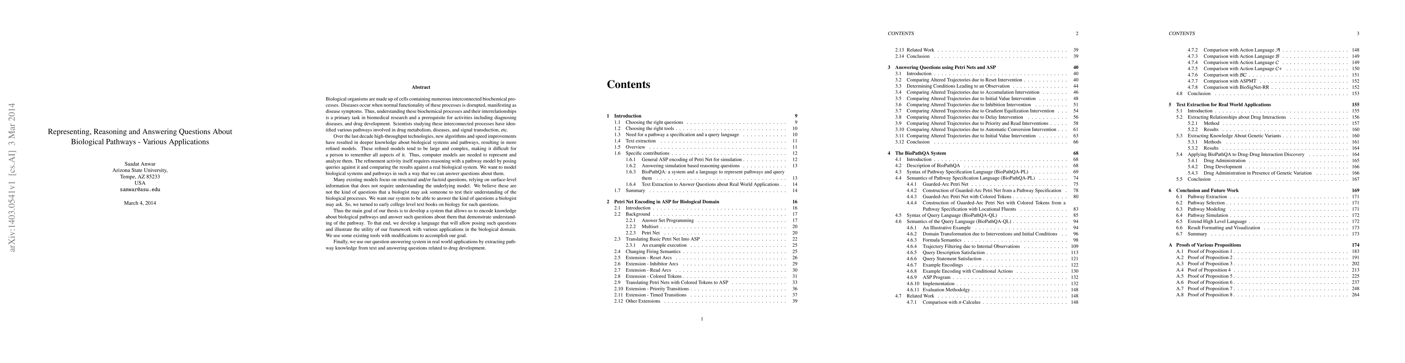 This paper aims to develop a system for modeling biological pathways and answering complex questions about them, focusing on deeper understanding rather than surface-level facts. The system uses a specialized language to encode pathway knowledge and demonstrates its utility through applications in drug development and signal transduction.
