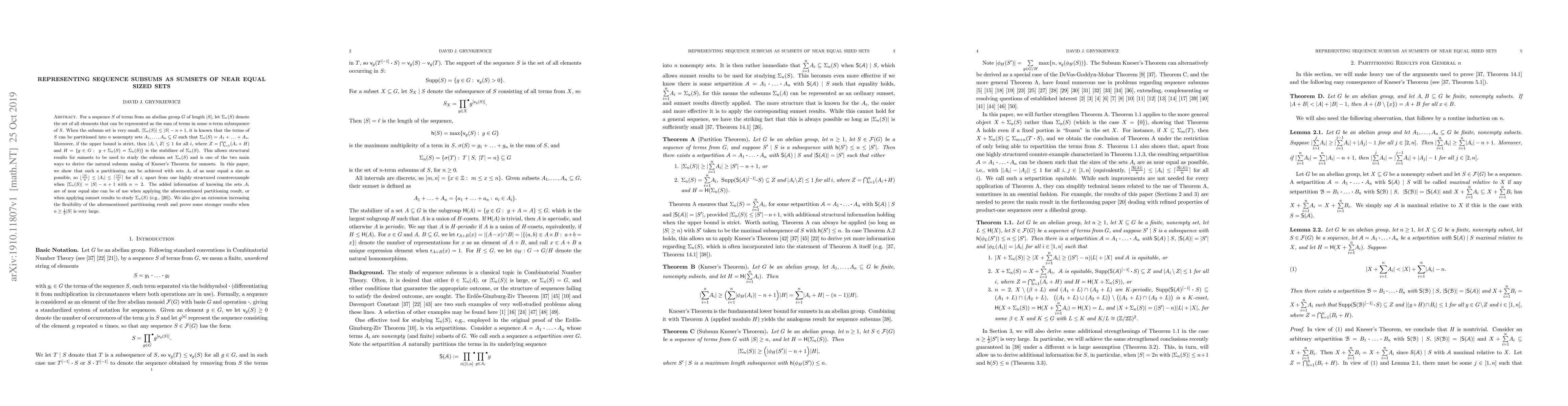This paper presents a method to partition a sequence S into n near-equal sized subsets A_i, allowing for the representation of sumsets. The partitioning is applicable when studying subsum sets, with the added benefit of near-equal set sizes enhancing applications of sumset results. The research also extends the partitioning method for larger n, providing stronger results.
