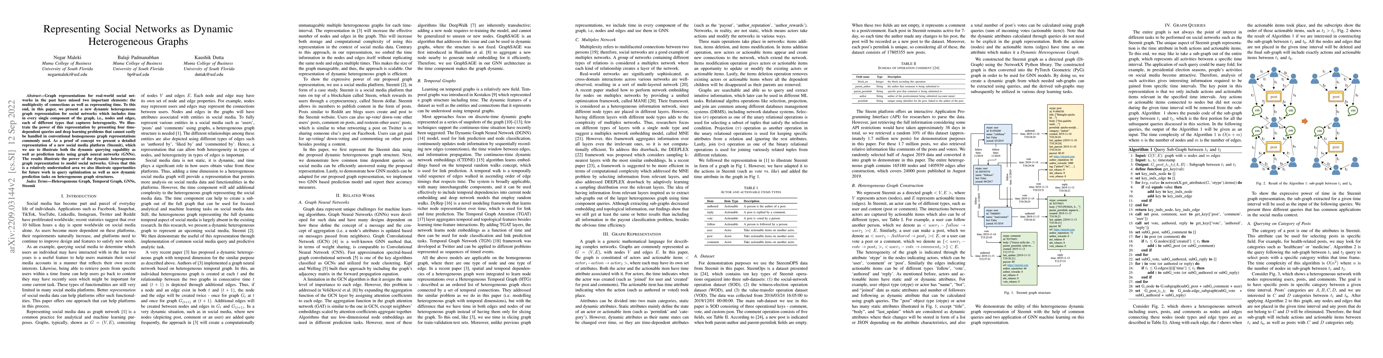 This paper introduces a novel dynamic heterogeneous graph representation for social networks, capturing multiplexity and temporal aspects. It demonstrates the method's efficacy through time-dependent queries and deep learning tasks, using a new social media platform as a case study, and highlights opportunities for future advancements in query optimization and dynamic predictions.