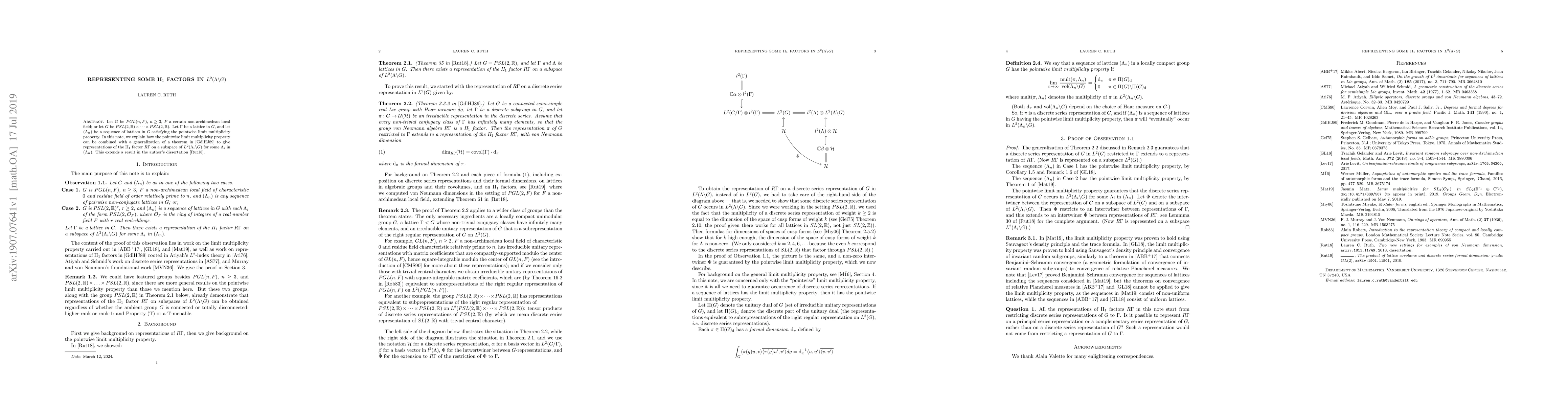 This paper explores representations of certain II$_1$ factors by combining the pointwise limit multiplicity property with a theorem from \cite{ghj}, yielding representations on subspaces of $L^2(\Lambda_i \backslash G)$ for specific lattices $\Lambda_i$. This extends prior work from the author's dissertation \cite{ruthphd}.