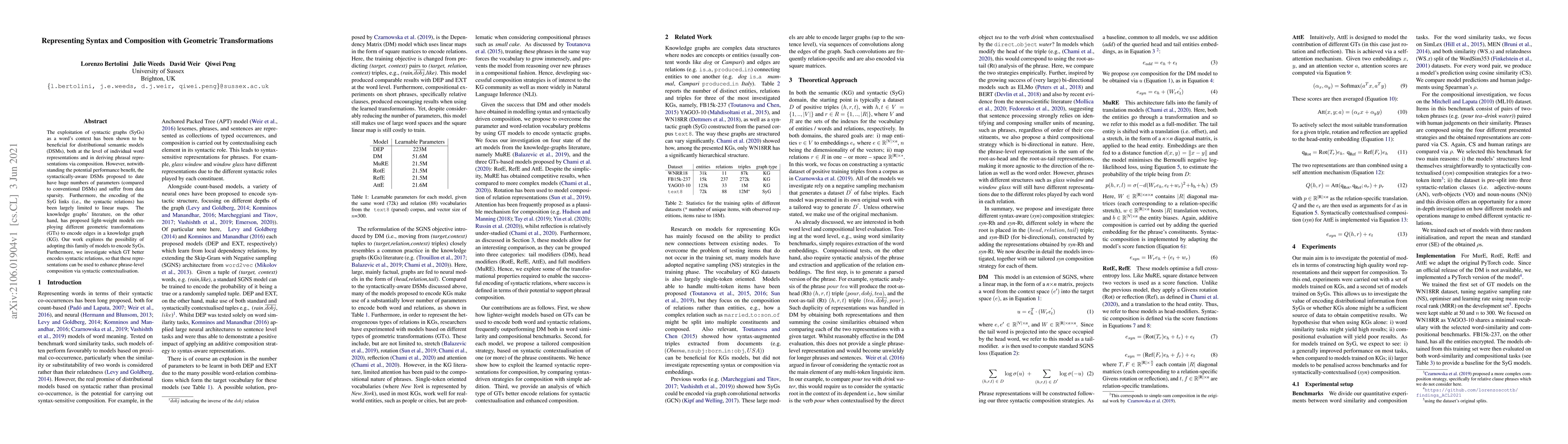 A research paper explores using geometric transformations to encode syntactic graphs in word representations, aiming to improve phrase-level composition with better parameter efficiency and data sparsity.
