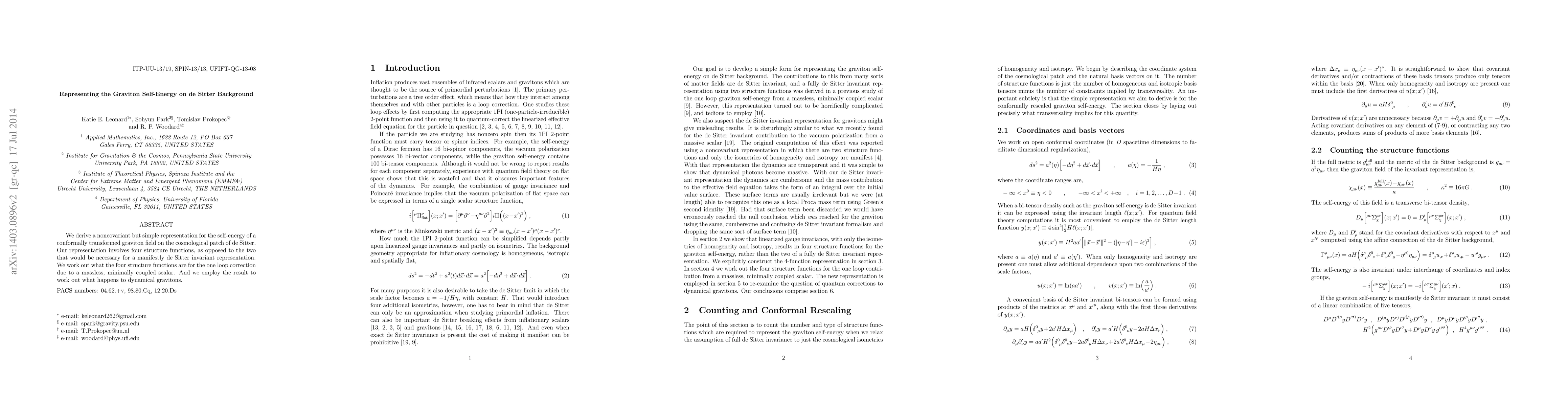 This paper derives a noncovariant representation for the graviton self-energy on a de Sitter background, involving four structure functions for a one-loop correction from a massless scalar. It examines the implications for dynamical gravitons.