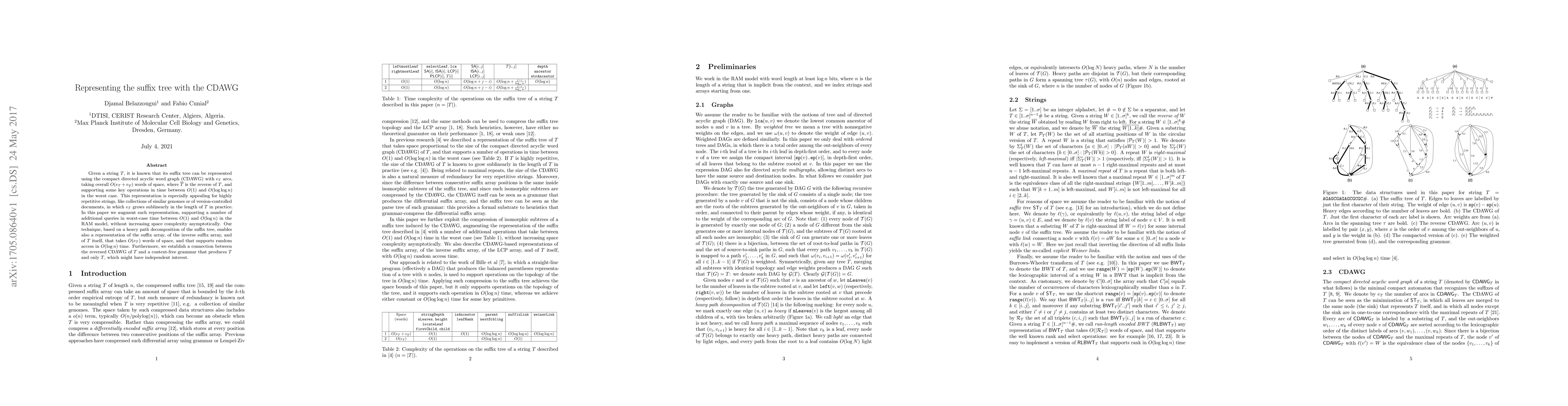 This paper presents a compact representation of a string's suffix tree using the CDAWG, supporting various queries in logarithmic time without increasing space complexity. It also introduces a heavy path decomposition technique to represent the suffix array, inverse suffix array, and the string itself efficiently.