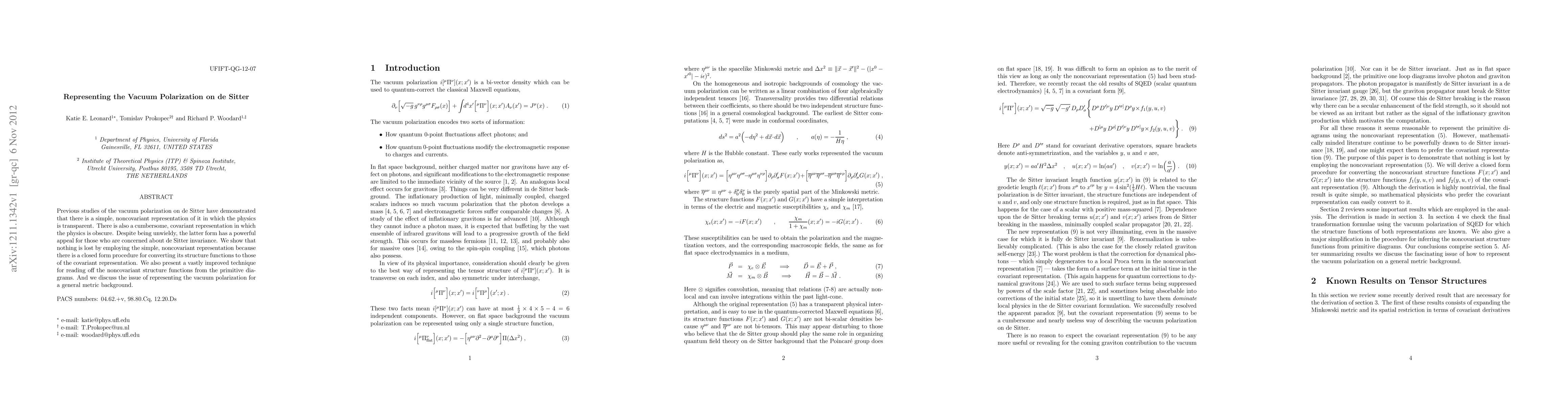 Previous studies of the vacuum polarization on de Sitter have demonstrated that there is a simple, noncovariant representation of it in which the physics is transparent. There is also a cumbersome, covariant representation in which the physics is obscure. Despite being unwieldy, the latter form has a powerful appeal for those who are concerned about de Sitter invariance. We show that nothing is lost by employing the simple, noncovariant representation because there is a closed form procedure for converting its structure functions to those of the covariant representation. We also present a vastly improved technique for reading off the noncovariant structure functions from the primitive diagrams. And we discuss the issue of representing the vacuum polarization for a general metric background.