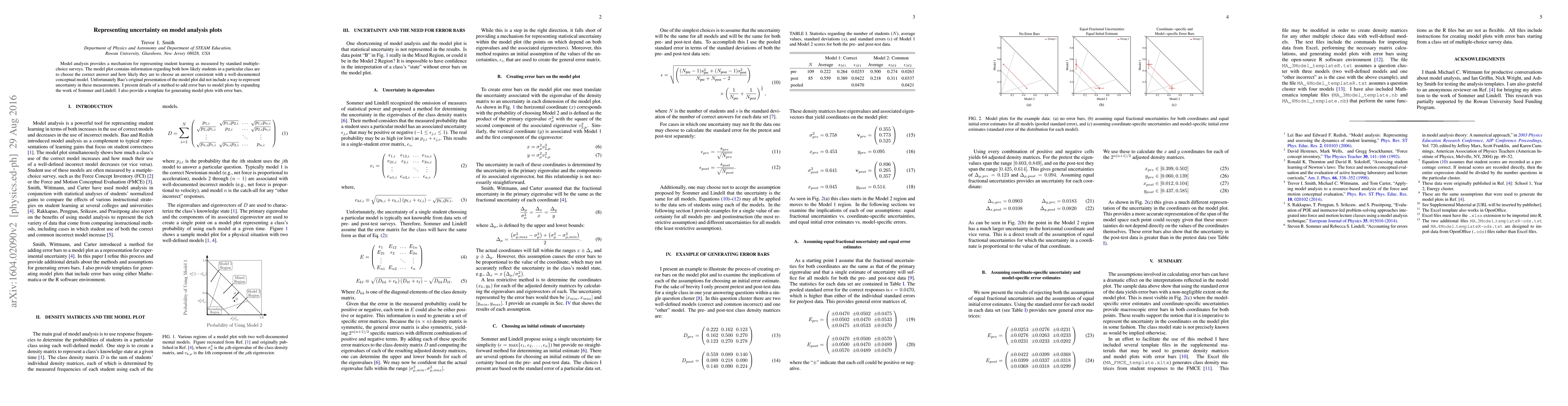 Model analysis provides a mechanism for representing student learning as measured by standard multiple-choice surveys. The model plot contains information regarding both how likely students in a particular class are to choose the correct answer and how likely they are to choose an answer consistent with a well-documented conceptual model. Unfortunately Bao's original presentation of the model plot did not include a way to represent uncertainty in these measurements. I present details of a method to add error bars to model plots by expanding the work of Sommer and Lindell. I also provide a template for generating model plots with error bars.