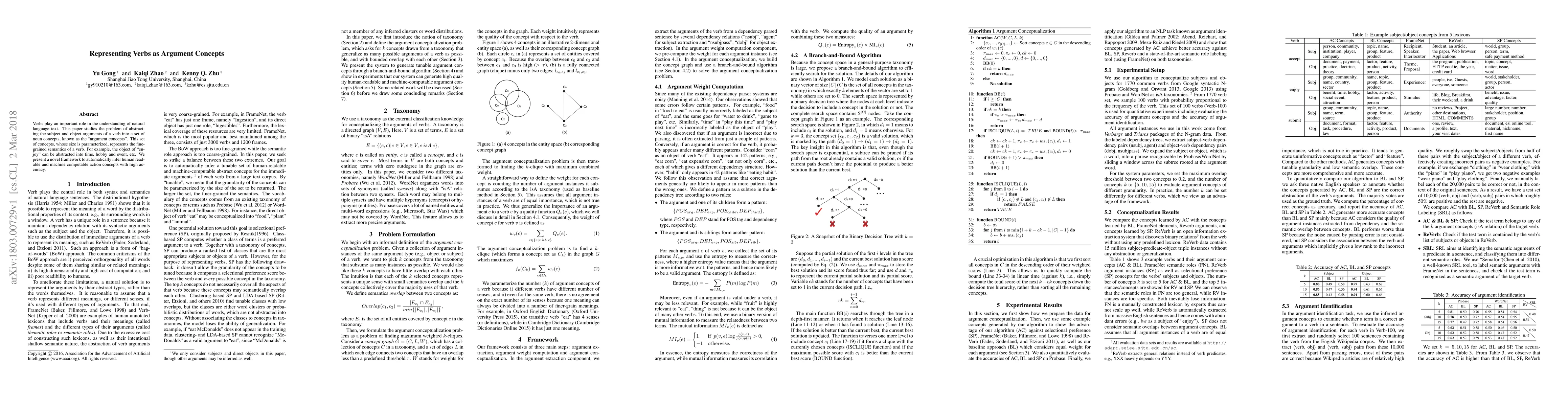Verbs play an important role in the understanding of natural language text. This paper studies the problem of abstracting the subject and object arguments of a verb into a set of noun concepts, known as the "argument concepts". This set of concepts, whose size is parameterized, represents the fine-grained semantics of a verb. For example, the object of "enjoy" can be abstracted into time, hobby and event, etc. We present a novel framework to automatically infer human readable and machine computable action concepts with high accuracy.