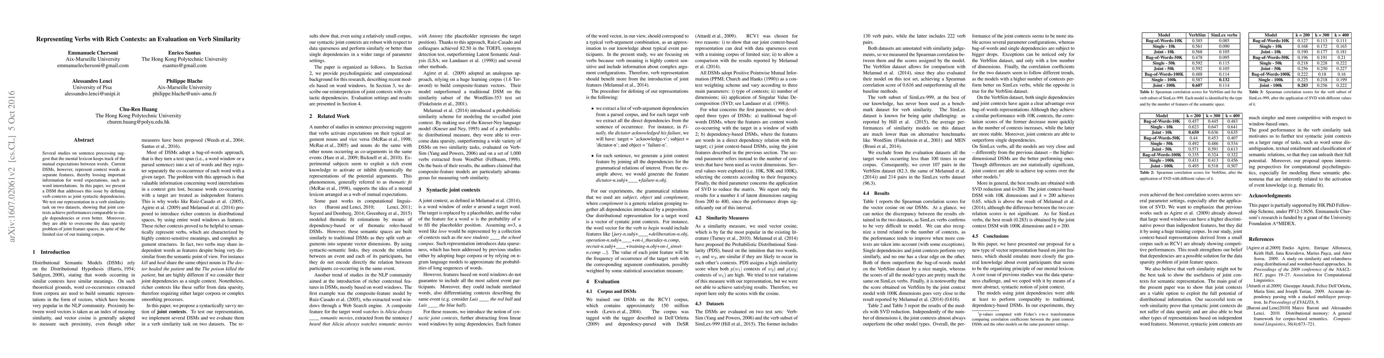 A new model for representing verbs with context improves verb similarity tasks compared to existing models, overcoming data sparsity issues.