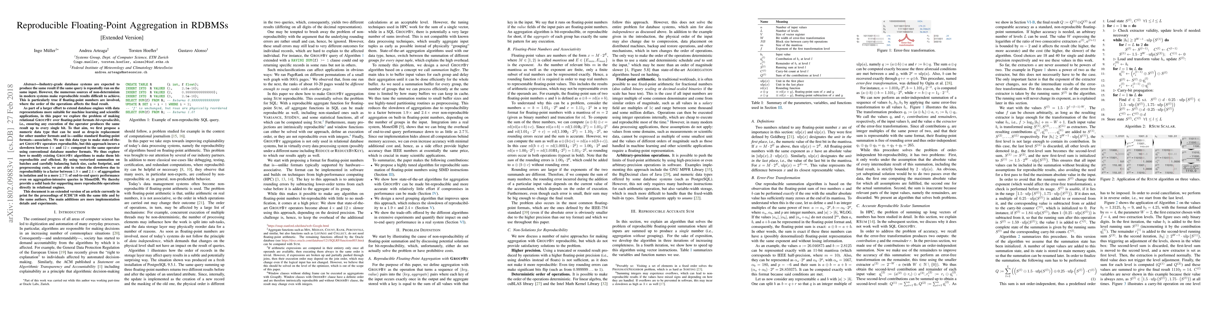 This work is novel in addressing the challenge of reproducible floating-point aggregation in RDBMSs, proposing a data type and algorithm that significantly reduce the performance overhead while maintaining bit-reproducibility.