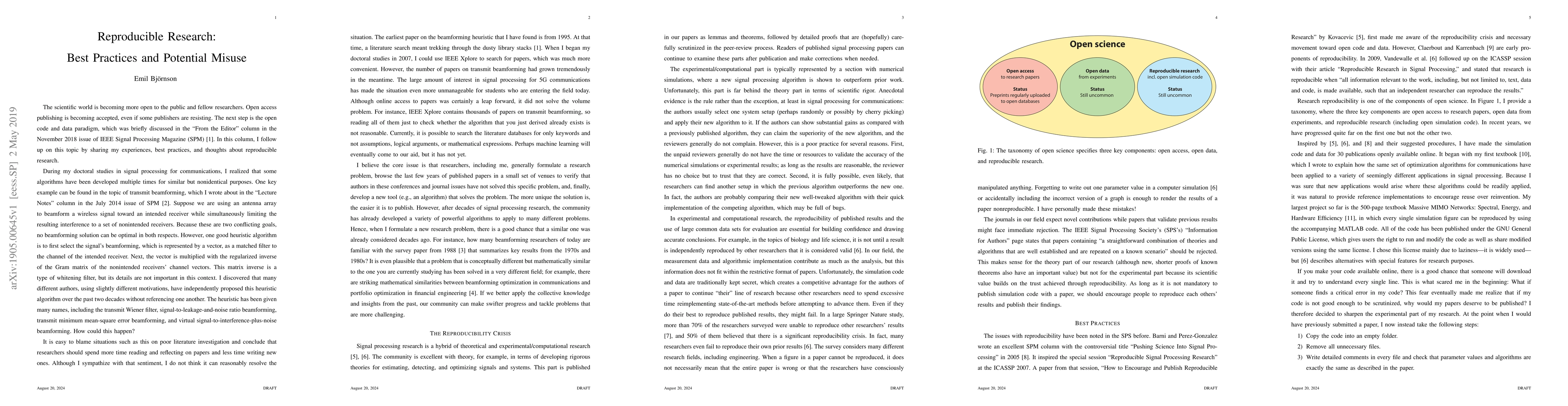 The scientific world is becoming more open to the public and fellow researchers. Open access publishing is becoming accepted, even if some publishers are resisting. The next step is the open code and data paradigm, which was briefly discussed in the "From the Editor" column in the November 2018 issue of IEEE Signal Processing Magazine (SPM) [1]. In this column, I follow up on this topic by sharing my experiences, best practices, and thoughts about reproducible research.
