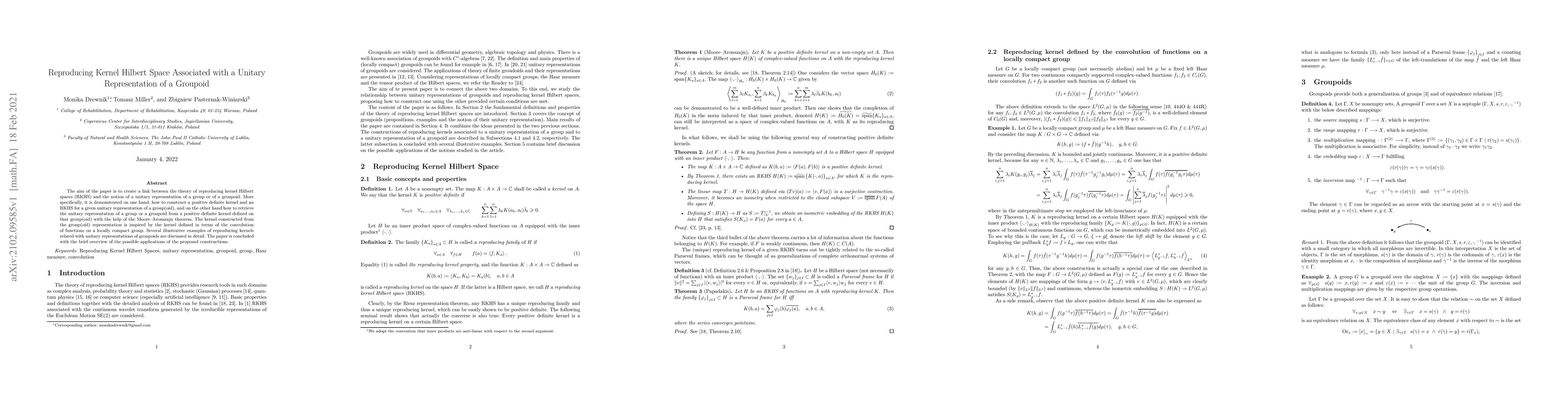 Researchers develop a method to link reproducing kernel Hilbert spaces with unitary representations of groups and groupoids, enabling the construction of positive definite kernels from these representations and vice versa.