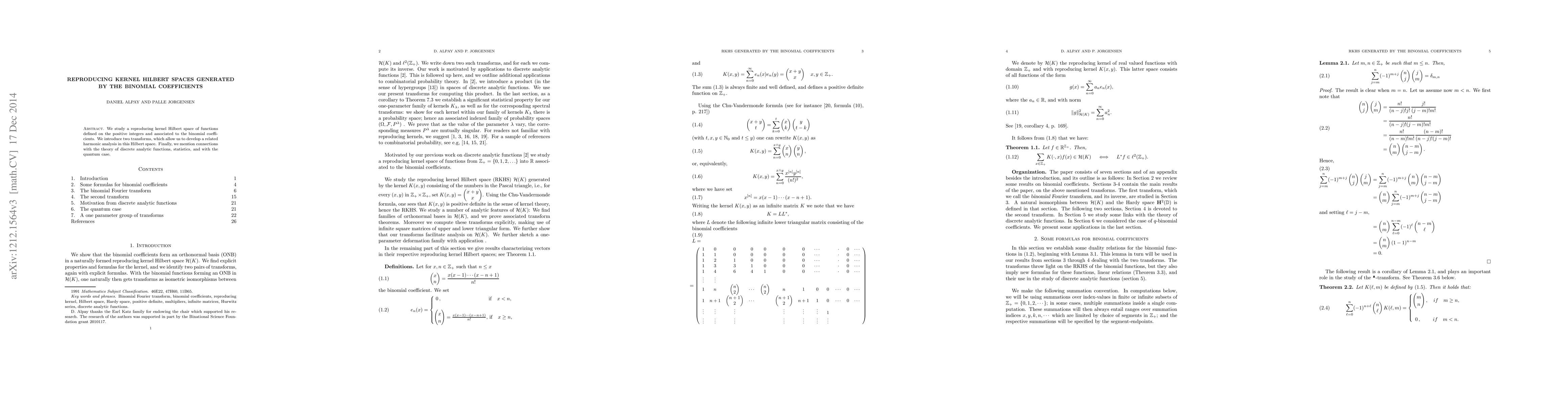 Researchers explore a reproducing kernel Hilbert space related to binomial coefficients, introducing new transforms for harmonic analysis, and highlighting connections to discrete analytic functions and quantum theory.