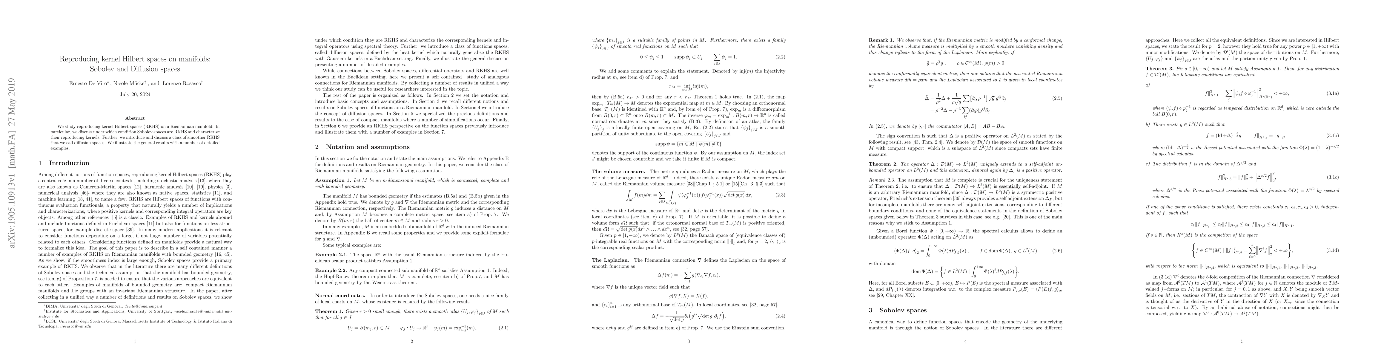 This paper explores the concept of reproducing kernel Hilbert spaces on Riemannian manifolds, revealing conditions for Sobolev spaces to be RKHS and introducing a new class of smoother spaces called diffusion spaces.