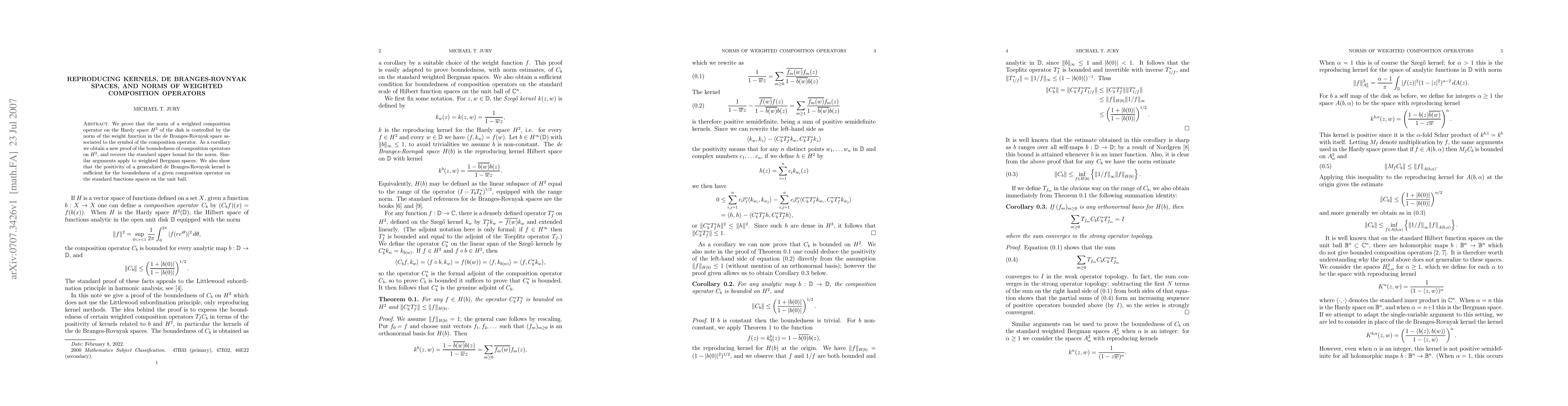 We prove that the norm of a weighted composition operator on the Hardy space H^2 of the disk is controlled by the norm of the weight function in the de Branges-Rovnyak space associated to the symbol of the composition operator. As a corollary we obtain a new proof of the boundedness of composition operators on H^2, and recover the standard upper bound for the norm. Similar arguments apply to weighted Bergman spaces. We also show that the positivity of a generalized de Branges-Rovnyak kernel is sufficient for the boundedness of a given composition operator on the standard functions spaces on the unit ball.