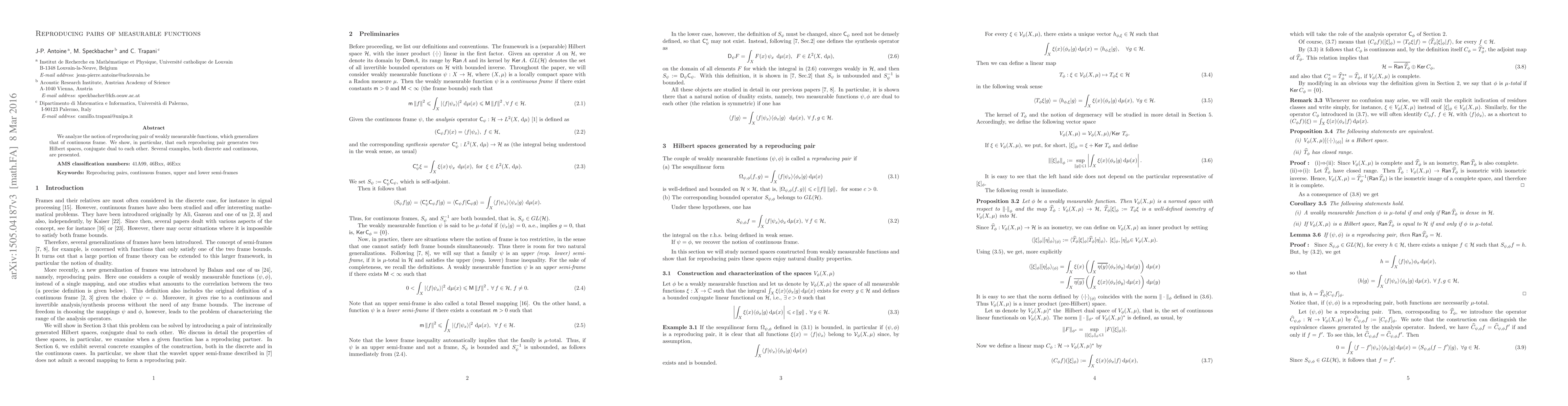This paper explores the concept of a reproducing pair of weakly measurable functions, extending the idea of continuous frames. It demonstrates that each reproducing pair generates two conjugate dual Hilbert spaces, and provides both discrete and continuous examples to illustrate this concept.