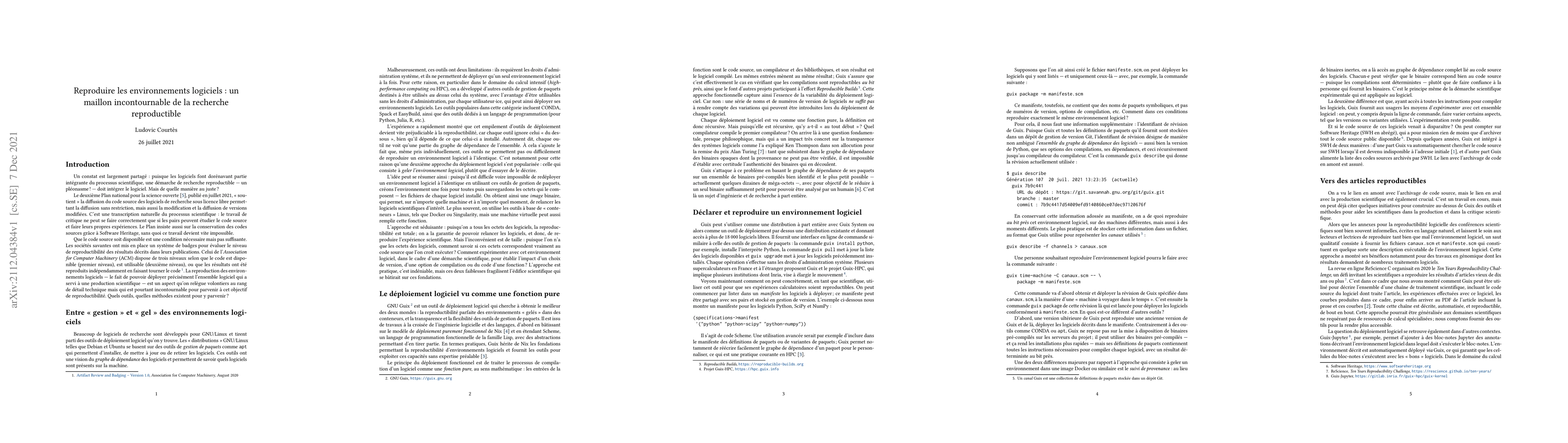 As software has become an integral part of scientific workflows, reproducible research practices must take it into account. In what way? Archiving source code is a necessary but insufficient condition. The ability to redeploy software environments, which at first sight may be viewed as a technical detail, is in fact a requirement. This article explores tools and methods to achieve this goal.