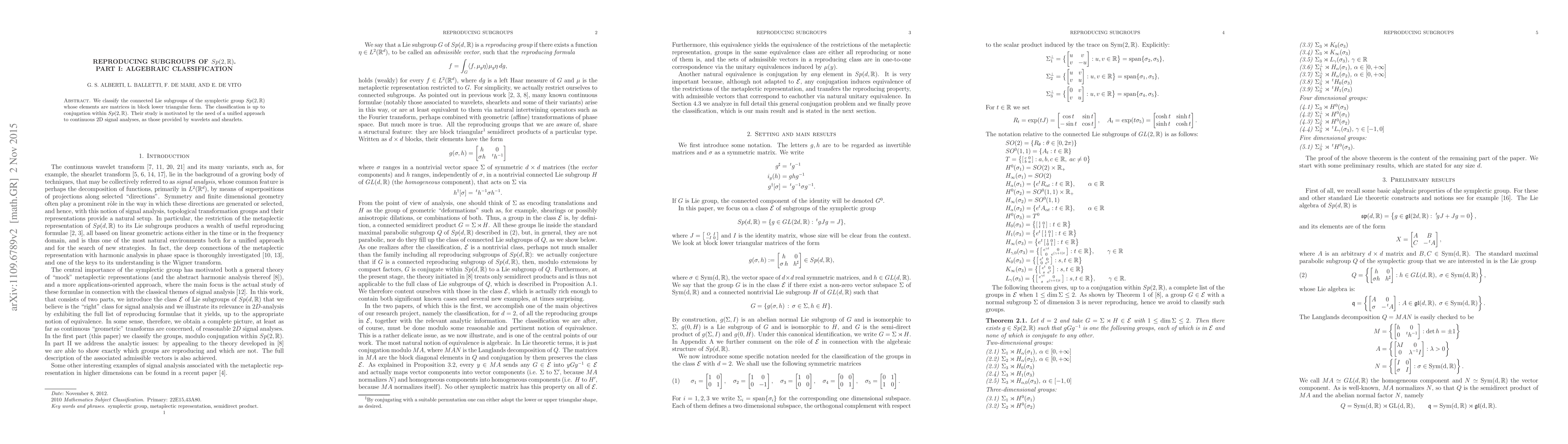 We classify the connected Lie subgroups of the symplectic group $Sp(2,\mathbb{R})$ whose elements are matrices in block lower triangular form. The classification is up to conjugation within $Sp(2,\mathbb{R})$. Their study is motivated by the need of a unified approach to continuous 2D signal analyses, as those provided by wavelets and shearlets.