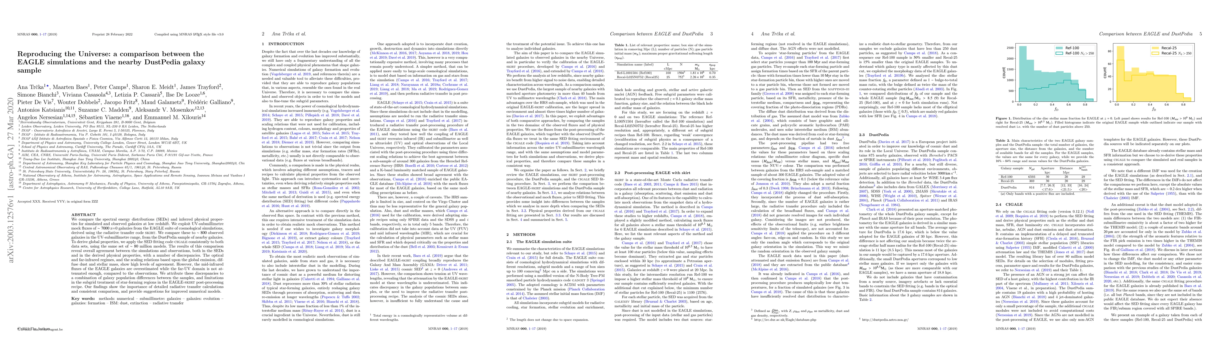 This paper compares the spectral energy distributions (SEDs) and physical properties of galaxies from the EAGLE simulations to those observed in the DustPedia sample, finding overall agreement but noting discrepancies in the mid-infrared and far-UV domains, attributed to differences in galaxy populations and limitations in the simulation's star-forming regions.