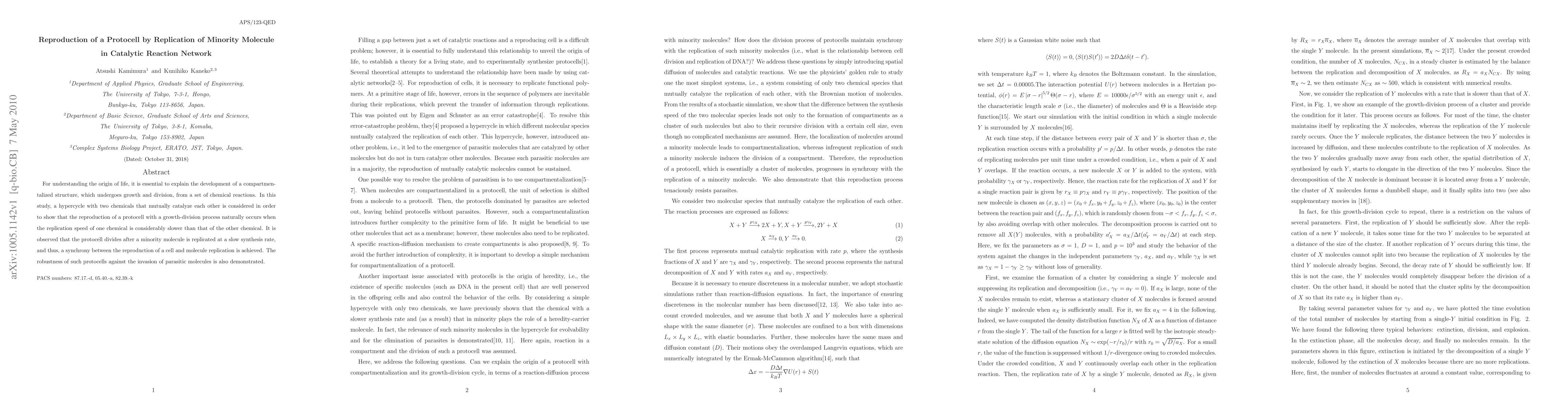 This study investigates how a hypercycle of mutually catalytic chemicals can lead to the natural reproduction of a protocell, demonstrating that slower replication of a minority molecule induces division, achieving synchrony between cell reproduction and molecule replication. The research also shows the robustness of these protocells against parasitic molecules.