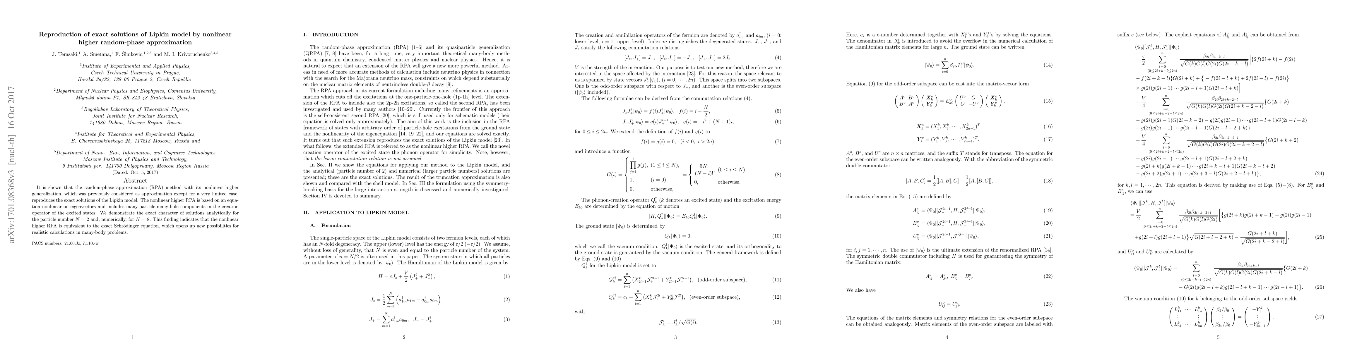 It is shown that the random-phase approximation (RPA) method with its nonlinear generalization, which was previously considered as approximation, reproduces the exact solutions of the Lipkin model. The nonlinear RPA is based on an equation nonlinear on eigenvectors and includes many-particle-many-hole components in the creation operator of the excited states. We demonstrate the exact character of solutions analytically for the particle number $N$ = 2 and, numerically, for $N$ = 20. This finding indicates that the nonlinear RPA is equivalent to the exact Schr\"{o}dinger equation, which opens up new possibilities for realistic calculations in many-body problems.