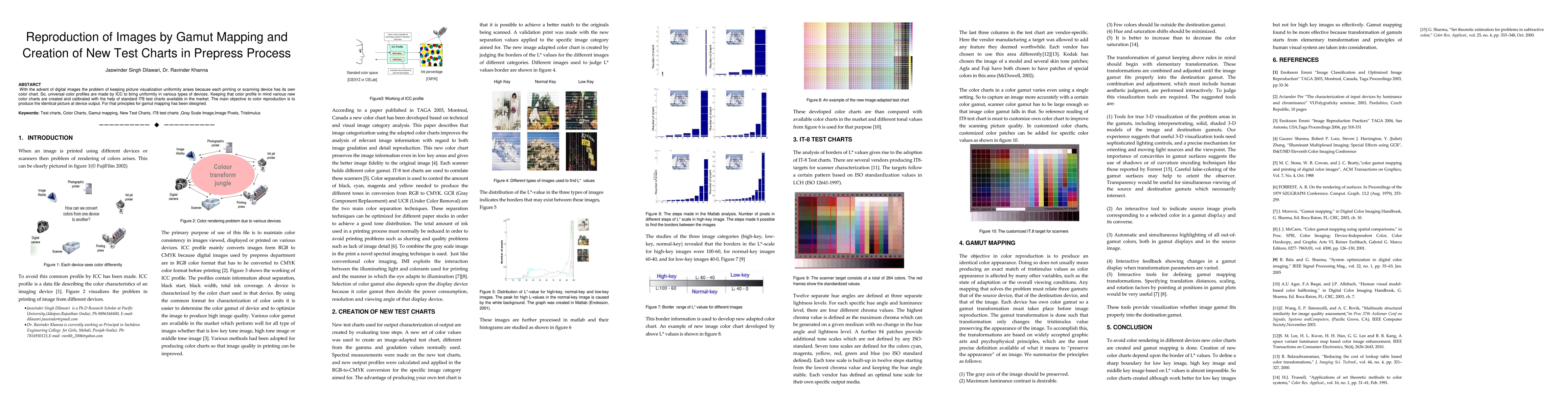This paper explores the reproduction of digital images through gamut mapping techniques and the creation of new test charts to ensure uniform visualization across different devices. It focuses on maintaining color profiles and calibrating new color charts using standard IT8 test charts to achieve consistent device output.