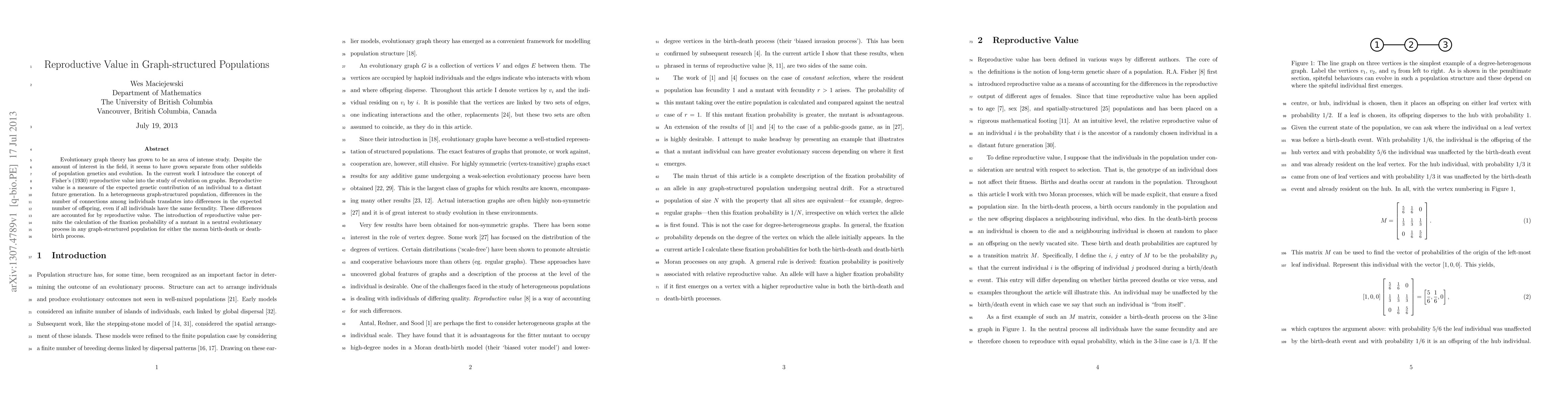 A new approach introduces reproductive value into graph-structured populations, accounting for differences in offspring production based on individual connections, enabling the calculation of fixation probability in various evolutionary processes.