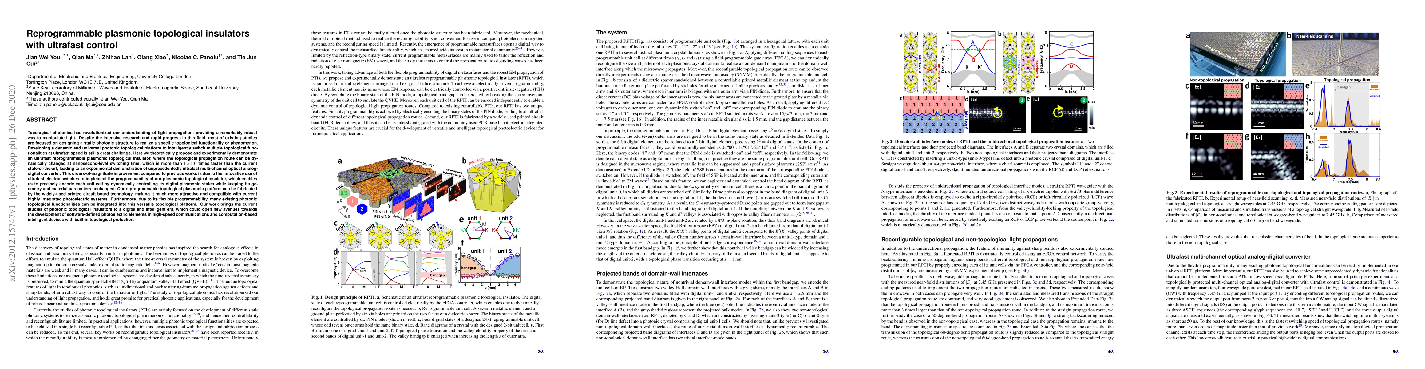Topological photonics has revolutionized our understanding of light propagation, but most of current studies are focused on designing a static photonic structure. Developing a dynamic photonic topological platform to switch multiple topological functionalities at ultrafast speed is still a great challenge. Here we demonstrate an ultrafast reprogrammable plasmonic topological insulator, where the topological propagation route can be dynamically steered at nanosecond-level switching time, namely more than 10^7 times faster than the current state-of-the-art. This orders-of-magnitude improvement is achieved by using ultrafast electronic switches in an innovative way to implement the programmability. Due to the flexible programmability, many existing photonic topological functionalities can be integrated into this agile topological platform. Our work brings the current studies of photonic topological insulators to a digital and intelligent era, which could boost the development of intelligent and ultrafast photoelectric devices with built-in topological protection.