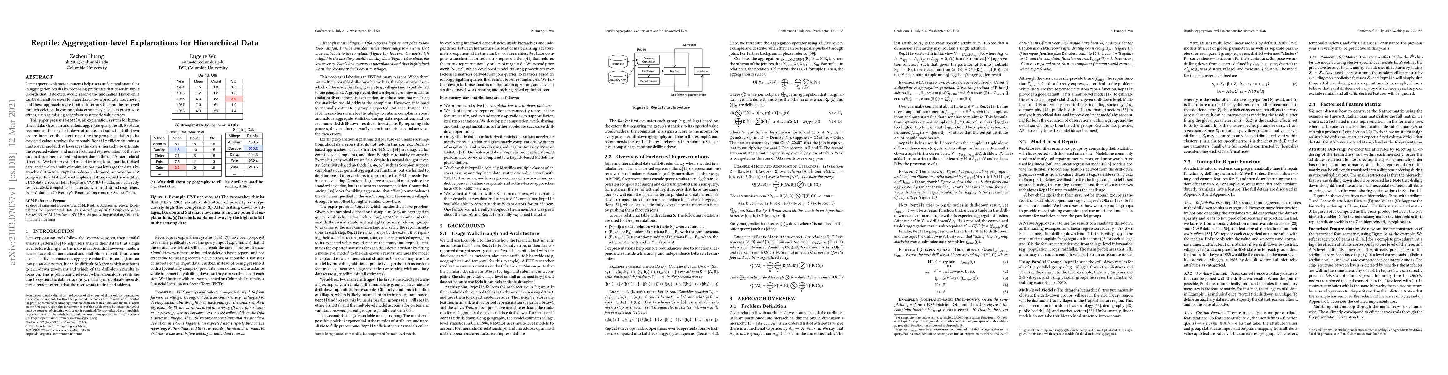 Reptile is an explanation system for hierarchical data that reduces end-to-end runtimes by over 6 times, correctly identifies 21/30 data errors and resolves 20/22 complaints in user studies.