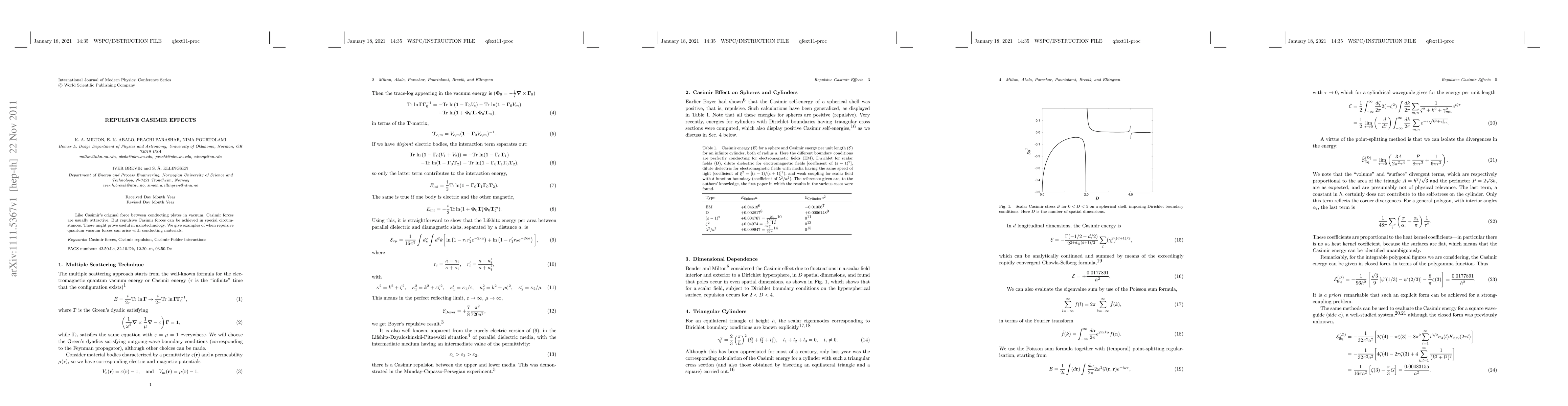 Summary: Repulsive Casimir effects, contrary to the usual attractive forces between conducting plates in vacuum, can occur under specific conditions involving conducting materials, potentially offering novel applications in nanotechnology.