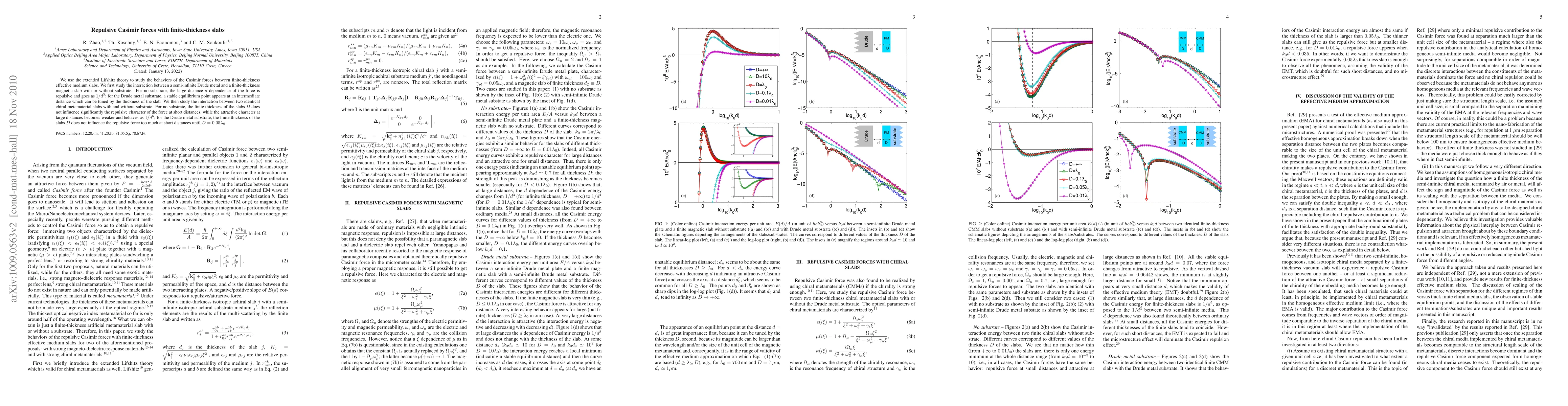 The paper extends previous Casimir force studies by applying the extended Lifshitz theory to finite-thickness slabs, revealing conditions under which repulsive forces can be observed and tuned.