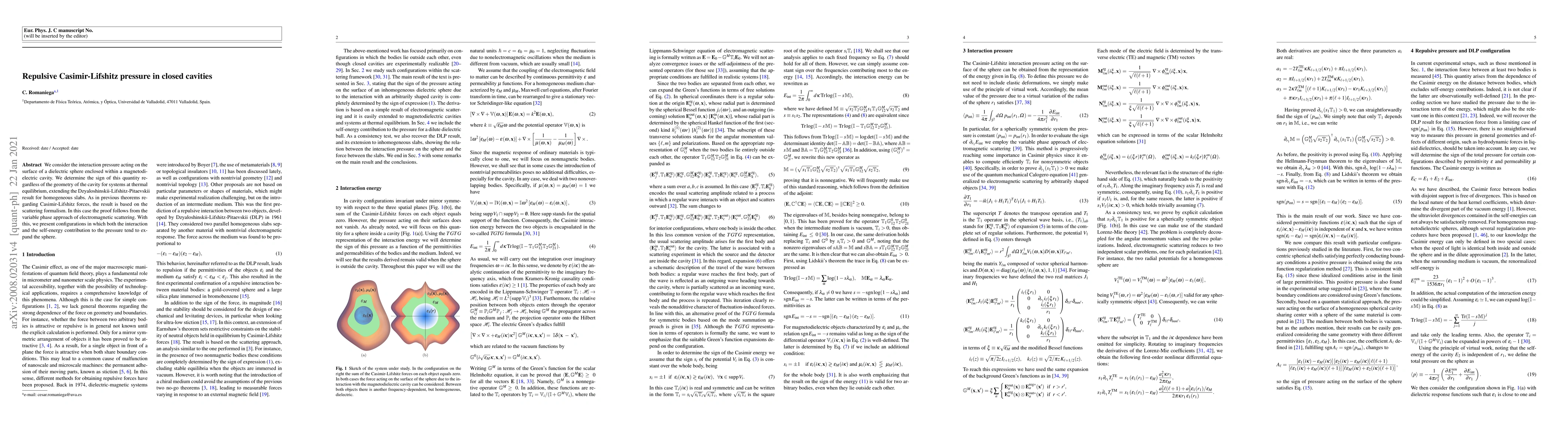 We consider the interaction pressure acting on the surface of a dielectric sphere enclosed within a magnetodielectric cavity. We determine the sign of this quantity regardless of the geometry of the cavity for systems at thermal equilibrium, extending the Dzyaloshinskii-Lifshitz-Pitaevskii result for homogeneous slabs. As in previous theorems regarding Casimir-Lifshitz forces, the result is based on the scattering formalism. In this case the proof follows from the variable phase approach of electromagnetic scattering. With this, we present configurations in which both the interaction and the self-energy contribution to the pressure tend to expand the sphere.