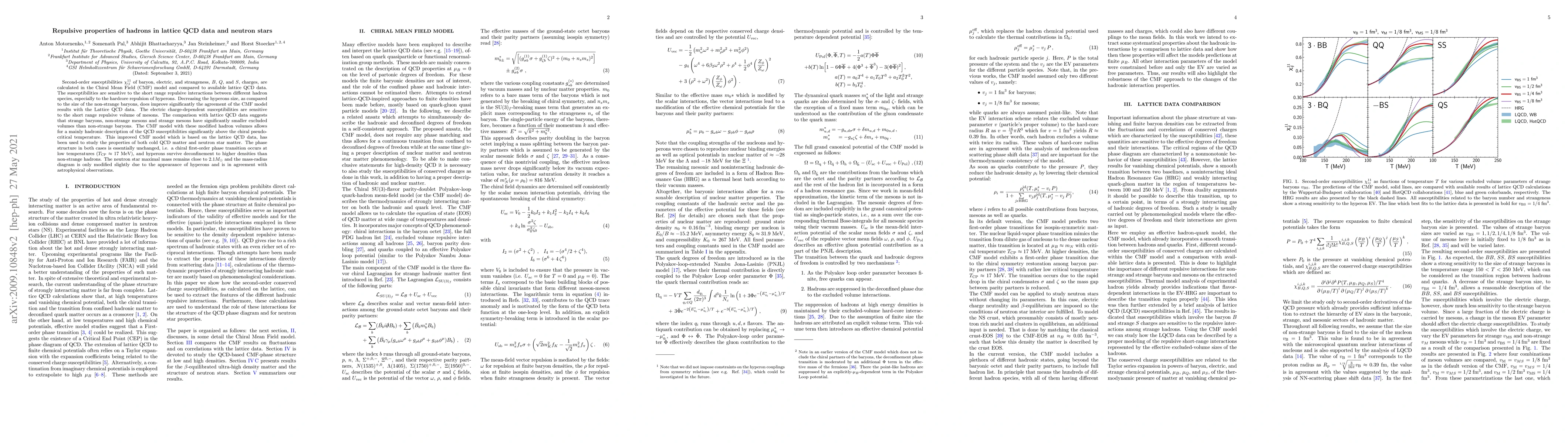 This study calculates second-order susceptibilities in the Chiral Mean Field model to match lattice QCD data, revealing that modified hadron volumes improve agreement. The model suggests smaller excluded volumes for strange baryons and mesons, leading to a mainly hadronic description of QCD susceptibilities. The findings maintain a chiral first-order phase transition and slightly modify neutron star mass-radius relations, aligning with astrophysical observations.