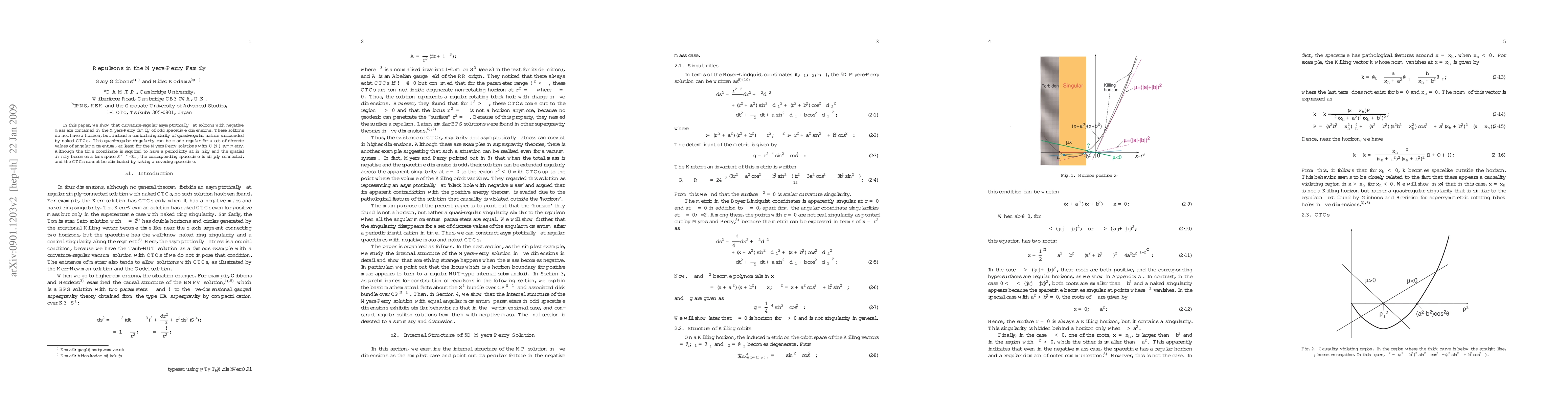 This paper demonstrates the existence of curvature-regular solitons with negative mass in the Myers-Perry family of spacetimes, featuring quasi-regular singularities surrounded by naked closed timelike curves (CTCs). These singularities can be regularized for specific angular momentum values, maintaining a simply connected spacetime despite CTCs.