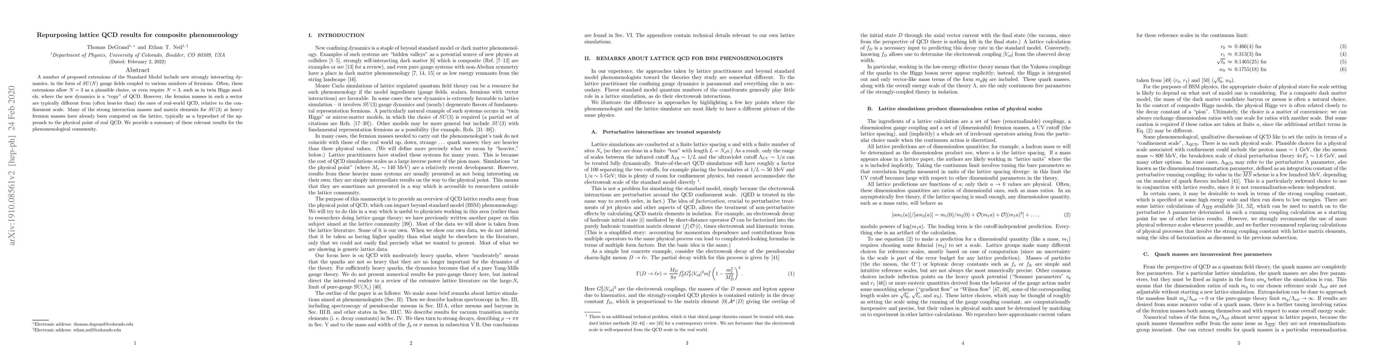 This paper summarizes lattice QCD computations of strong interaction masses and matrix elements for SU(3) at heavy fermion masses, repurposing these results to inform composite phenomenology in proposed extensions of the Standard Model, such as twin Higgs models.