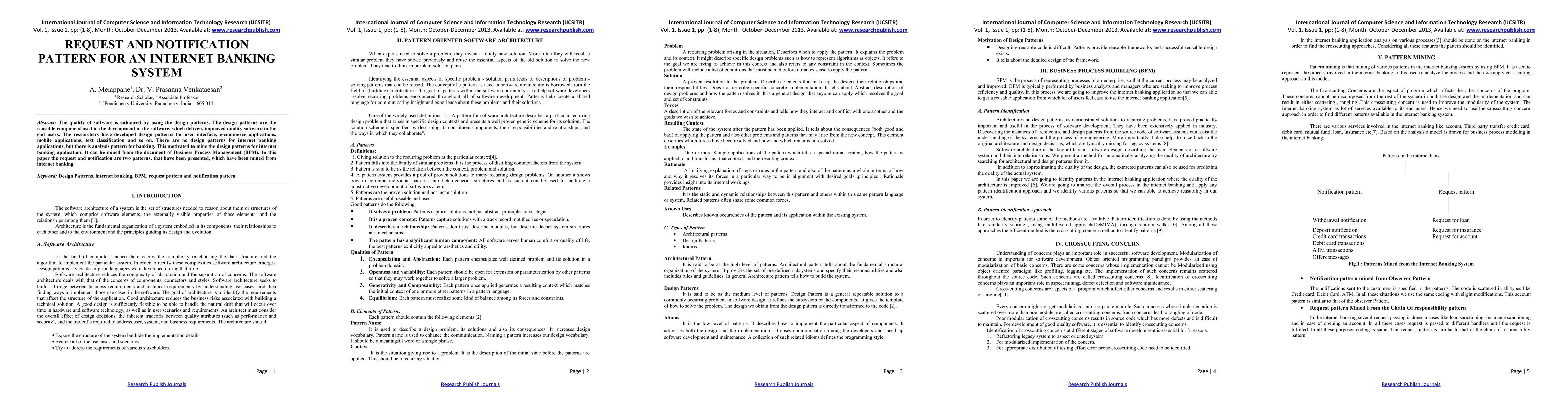 The quality of software is enhanced by using the design patterns. The design patterns are the reusable component used in the development of the software, which delivers improved quality software to the end users. The researchers have developed design patterns for user interface, e-commerce applications, mobile applications, text classification and so on. There are no design patterns for internet banking applications, but there is analysis pattern for banking. This motivated to mine the design patterns for internet banking application. It can be mined from the document of Business Process Management (BPM). In this paper the request and notification are two patterns, that have been presented, which have been mined from internet banking.