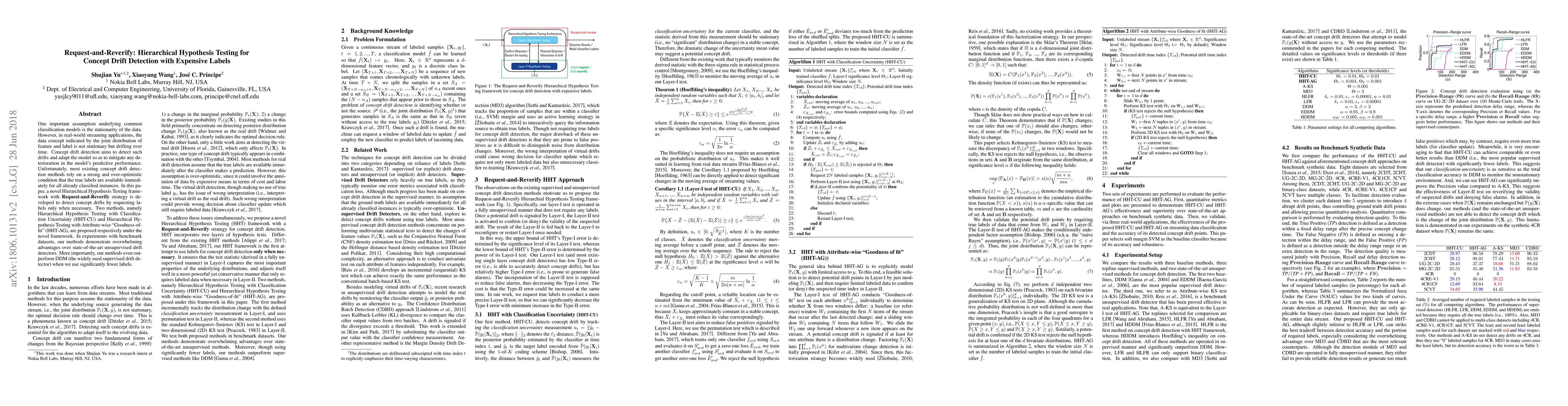 This paper proposes a novel Hierarchical Hypothesis Testing framework with a Request-and-Reverify strategy to detect concept drifts with minimal reliance on expensive true labels. The methods HHT-CU and HHT-AG outperform state-of-the-art unsupervised detectors and even the supervised DDM with fewer labels.